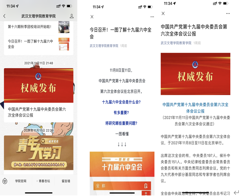 11月15日至22日,伟德体育伟德体育官方网站员工党支部联合公司分团委组织部在公司各团支部开展“学习十九届六中全会重要精神”主题团日活动,大一年级各团支部利用晚自习时间开展,其他年级采用线上线下相结合的形式陆续开展有关活动。