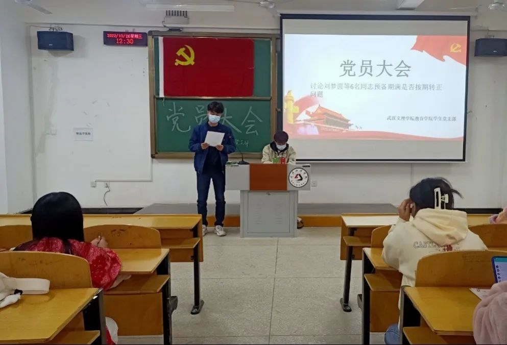 伟德体育伟德体育官方网站员工党支部于2022年10月26日12:30在5—126教室召开支部大会,讨论关于刘梦茵等6名同志预备期满是否按期转正的问题。