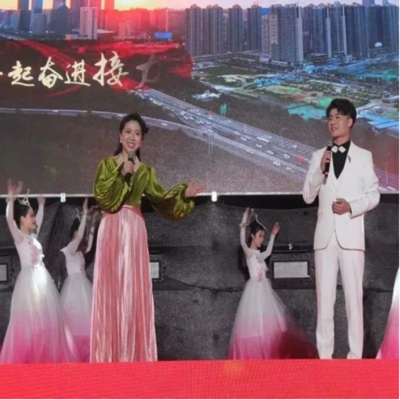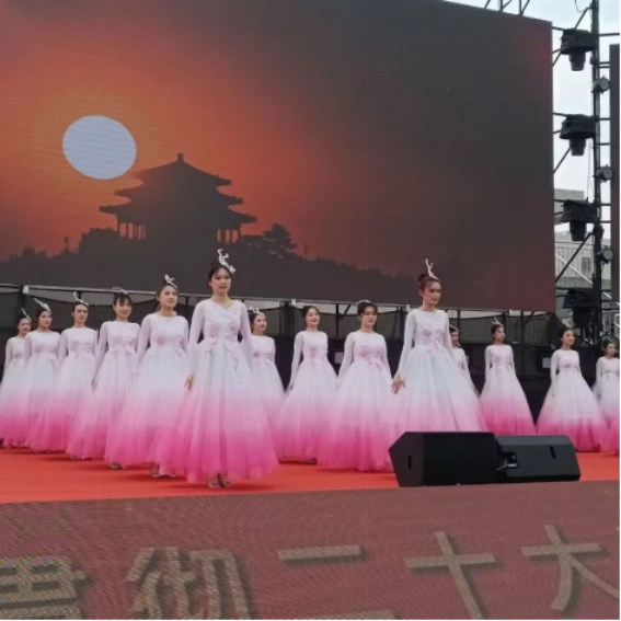 梦想照耀前方,信仰点燃勇气。看肖昌浩然老师与徐珊老师在舞台上热情演唱,伴舞同学们跟随歌声与旋律翩翩起舞。自信前行,看中华儿女走向新的天地!