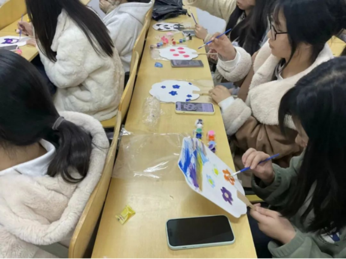 同学们有的以漆为笔,以水为墨,聚精会神地投入漆扇的制作。有的利用扭扭棒发挥创意制作各种各样美丽花束。漆扇清新淡雅,花束五彩缤纷。各式各样的手工艺品传递着同学们对社区老人的关心。