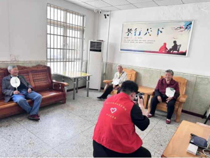 30日、31日上午7点半,志愿者们统一坐车前往二八八社区与胜海社区,在社区工作人员的帮助下开展了给老人拍照、送手工漆扇、送扭扭棒花束等活动。