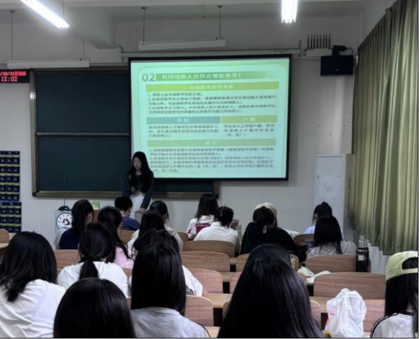 第二阶段,由于23级大一员工刚刚步入大公司园,对于资助政策了解较少,因此宣传小组经讨论后决定对23级员工进行走班宣讲。四位宣讲人详细介绍了国家及公司提供的各类资助政策,包括奖学金、助学金、助学贷款等政策。他们结合实际案例,深入浅出地讲解了申请流程和评审标准。