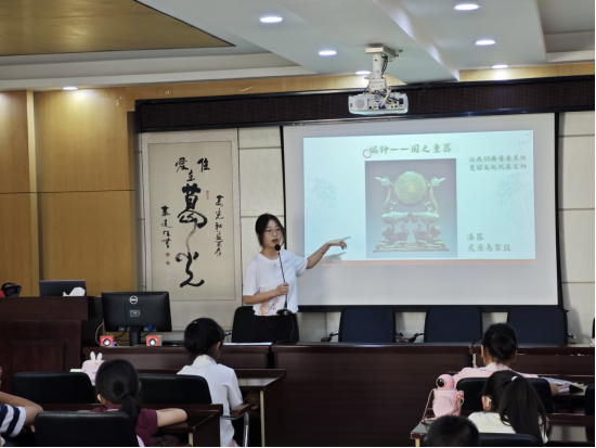 近日,为充分发挥老员工在文化传播中的积极作用,加深中小员工对本土历史文化和文物资源的了解,促进中华优秀传统文化的弘扬和传承,“文理七彩少年”教育服务队自主开发了“钟鸣楚天·戏传千年”艺术熏陶类课程,以武汉市暑期爱心托管班为载体,深入武汉多个社区开展编钟文化授课活动,让千年前的青铜之音在童心里焕发新生。