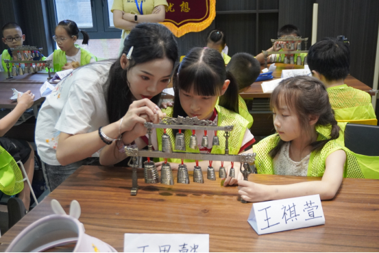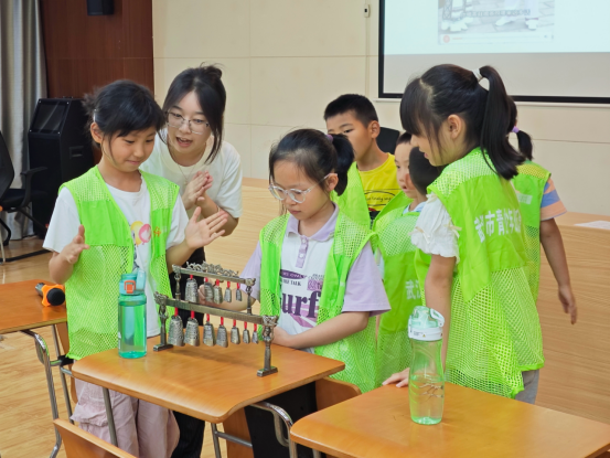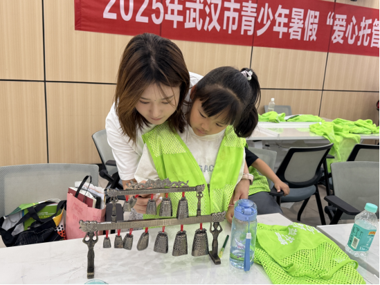 在武汉市多个社区的暑期托管班里,“文理七彩少年”教育服务队的队员们为孩子们带来了一场又一场别开生面的编钟文化体验课。通过理论与实践相结合的方式,让青少年近距离感受这一国家级非物质文化遗产的独特魅力。