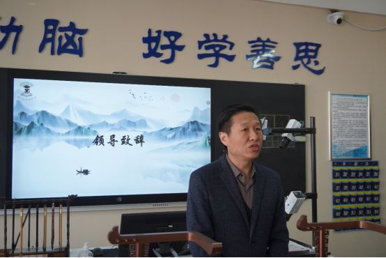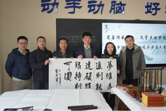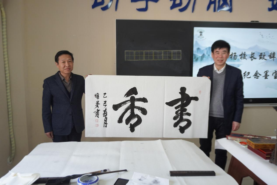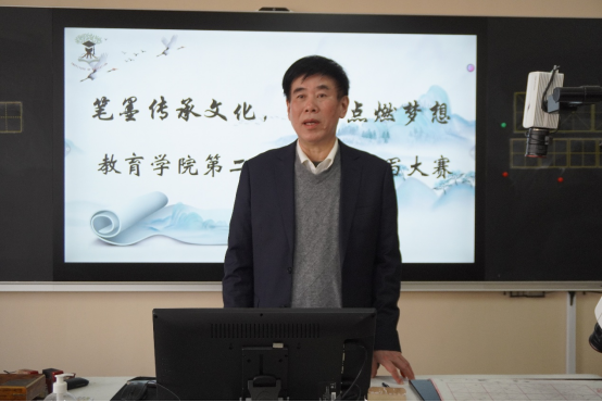 杨灼芳教授在比赛现场为大家题词,笔力遒劲,气韵生动,瞬间将现场氛围推向高潮。题词后杨董事长表示,书法是中国传统文化的重要组成部分,希望同学们不仅追求书写技巧的提升,更要深入理解书法背后的文化内涵,将书法艺术与文化修养相结合,以书法为媒,传承和弘扬中华优秀传统文化。