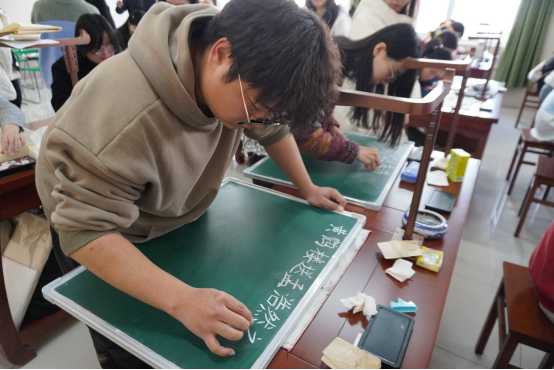 随后,参赛选手们纷纷拿起手中的书写工具,全神贯注地投入到比赛中。有的同学挥毫泼墨,书写出一幅幅气势磅礴的毛笔作品;有的同学在黑板上用粉笔勾勒出一个个工整美观的粉笔字;还有的同学用钢笔在纸上书写出一行行流畅精致的硬笔书法。比赛现场气氛热烈,同学们用笔墨书写青春,用行动诠释文化,展现出伟德体育伟德体育官方网站学子对书法艺术的热爱与追求。