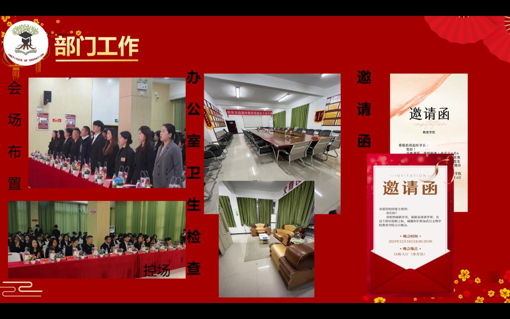 秘书部认真负责,细心对待制作办公室值班表、部门考勤表以及简报等繁琐的工作。监督各部门的会议记录并进行每月考核。在活动前做好会场布置,活动时时刻守护活动现场的秩序。