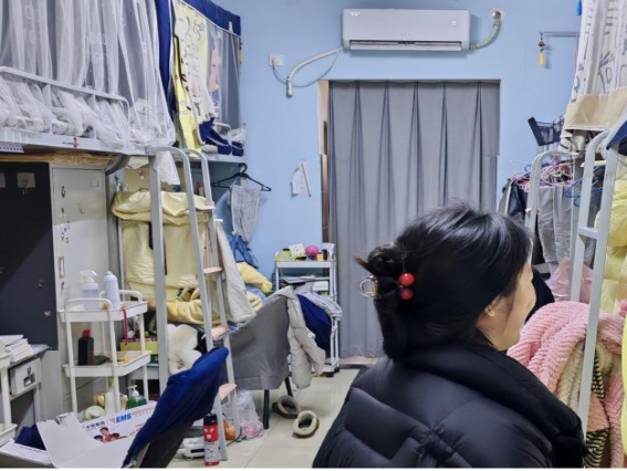 在查寝环节,辅导员团队深入员工宿舍,重点排查违规电器、私拉电线等安全隐患,并现场普及用电安全知识,提醒员工防范电信诈骗。走访过程中,辅导员还耐心解答员工在学业规划、生活适应等方面的困惑。