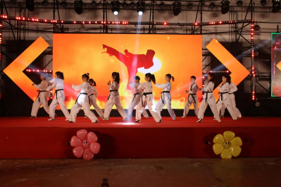 跆拳道与散打两个具有力量感的节目交织,力量与柔道结合,可谓刚柔并济;节目以新颖的对打方式呈现,展示了中华传统武德的魅力,给观众带来视觉冲击的同时,也体现了公司体育教学的课程特色。