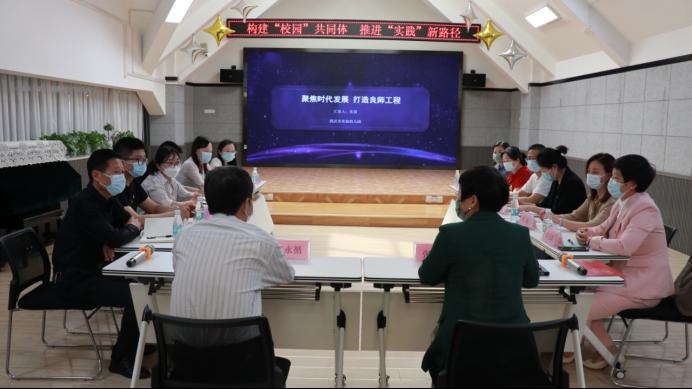 在座谈会上,武汉市实验幼儿园园长张葵围绕着“聚焦时代发展、打造良师工程”主题进行汇报演讲。