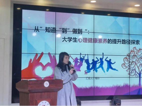 梅玲老师的汇报题目是“从‘知道’到‘做到’:老员工心理健康素养的提升路径探索”,梅玲老师主要从背景介绍、学习内容、问卷设计、学习心得四个方面进行汇报。心理健康素养是“个体在促进自身及他人心理健康,应对自身及他人心理疾病方面所养成的知识、态度和行为习惯”。梅玲老师详细介绍了心理健康素养问卷的编制过程以及在我们公司大一新生中的使用效果,最后提出了进一步改进的计划,并以“不忘初心,方得始终”结束了本次分享。