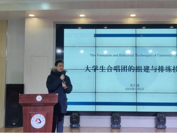 夏江南老师的报告题目为“老员工合唱团的组建与排练技巧”,汇报主要从为什么合唱、组建规模、队员挑选、管理办法、排练技巧以及实际运用展开。通过分享让大家知道了合唱的重要性:老员工合唱团的建设与发展能够有效提高员工的审美能力,促进员工集体主义价值观的形成。在幼师专业教学中,音乐艺术教学是非常重要的一项内容,因为音乐教学也是幼师专业员工未来职业生涯中的一项重要的工作内容,所以合唱团的训练针对幼师专业员工,有利于提高他们的专业素养。