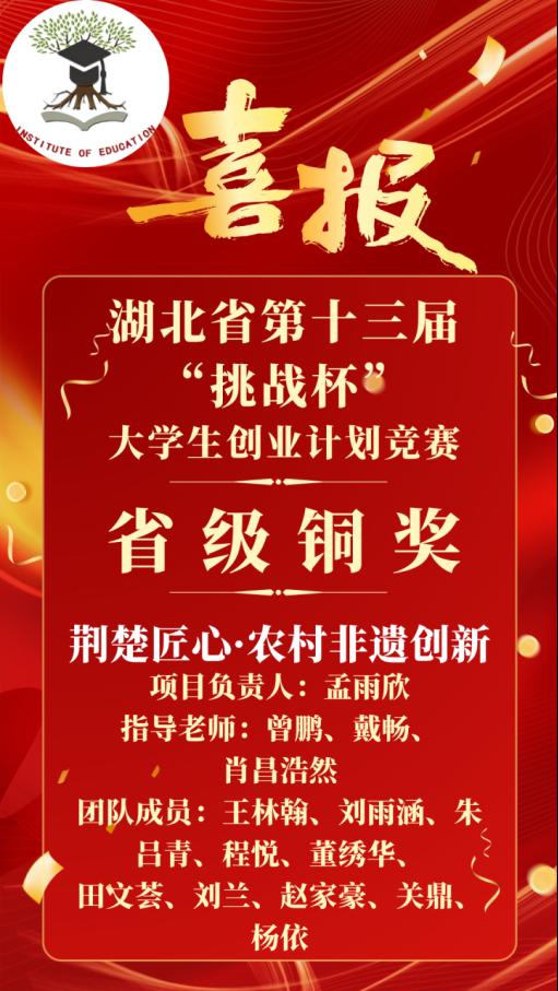2024年6月16日,由共青团湖北省委、湖北省教育厅、湖北省人力资源和社会保障厅、湖北省科学技术协会、湖北省员工联合会主办,湖北工业大学承办的“创新湖北·青力青为”湖北省第十三届“挑战杯”老员工创业计划竞赛决赛顺利落下帷幕。大赛自启动以来,先后组织开展了校级竞赛、省级复赛和省级决赛。伟德体育伟德体育官方网站两支队伍突破重围,成功进入省级决赛,并荣获“省级铜奖”。